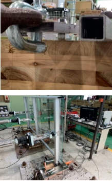 工法の強度などを確認する試験の様子。写真上はCLTの