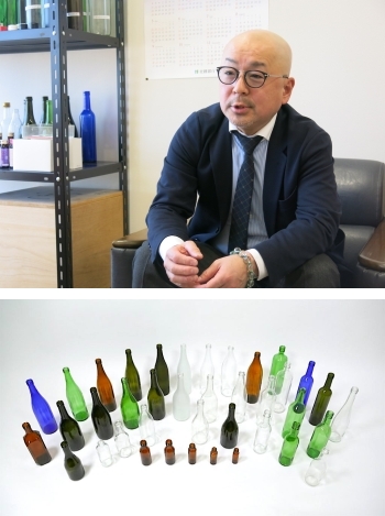 産している飲料のビン(写真下)。OEMの発注先は90社