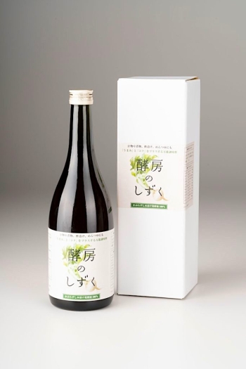 「この発酵液は、『酵房のしずく』という商品名で、販売することになりました。地域資源ファンド事業の支援をいただいたおかげで、チラシやポスターなども準備することができました。自社サイトでの通販のほか、南砺市の「道の駅なんと一福茶屋」や「ヨッテカーレ城端」、などで販売していますし、ふるさと納税の返礼品にもなっています。また飲食店の中には、料理の出汁として使われるお店もあります」